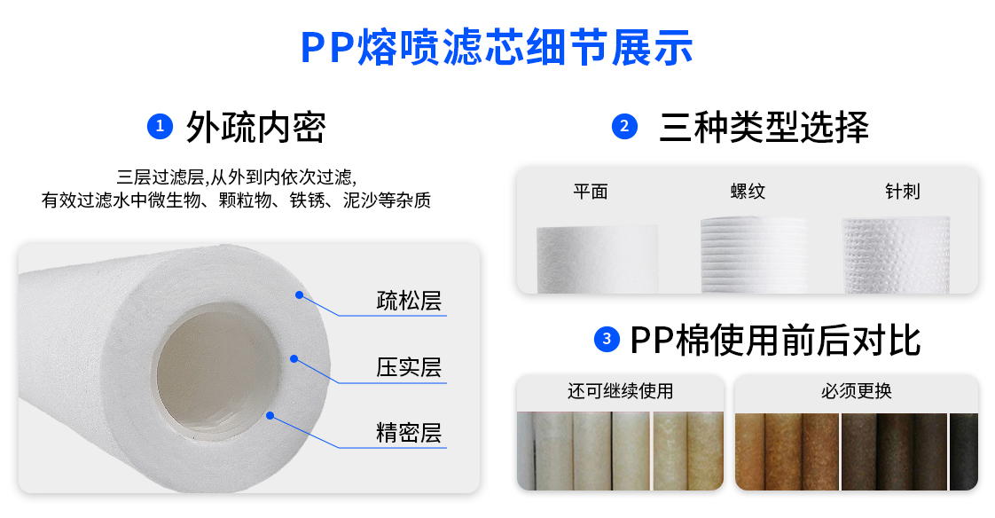 PP熔噴濾芯是采用無毒無味的聚丙烯粒子,經(jīng)過加熱熔融、噴絲、牽引、接受成形而制成的管狀濾芯,不僅在水凈化大批量使用.還具有杰出的化學(xué)兼容性,適用于強(qiáng)酸、強(qiáng)堿及有機(jī)溶劑的過濾,這種濾芯是一種以超細(xì)聚丙烯纖維濾材為過濾介質(zhì)的固定孔徑深層過濾芯,濾材符合FDA相關(guān)要求。