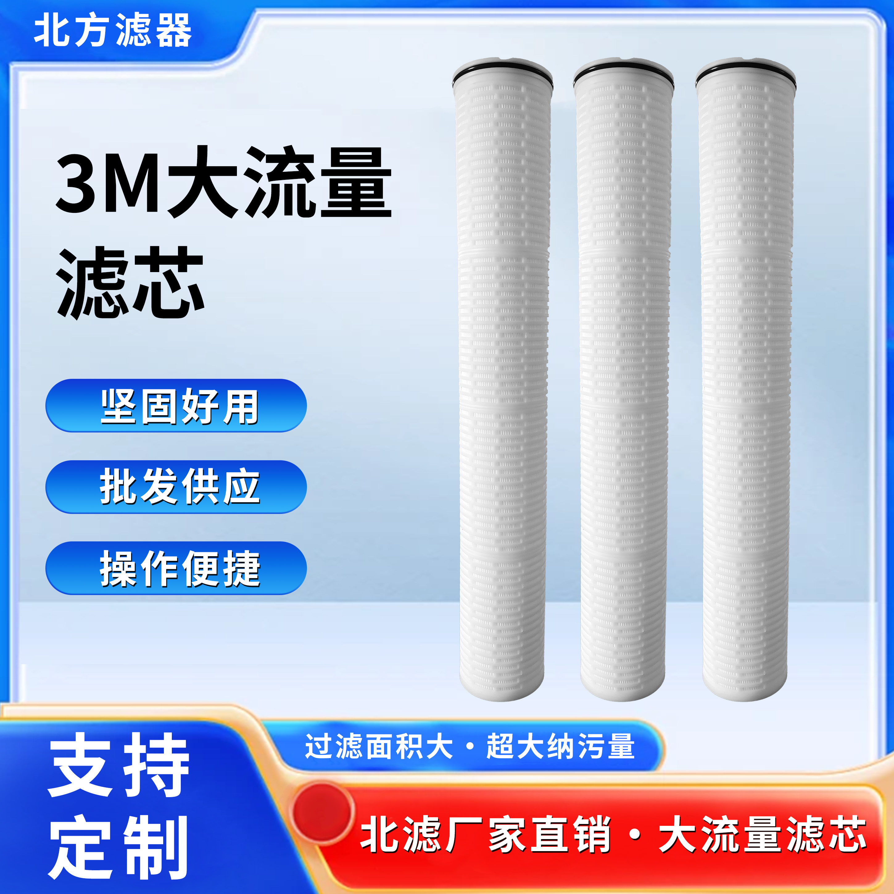 ‌  環保材料與可持續性‌:采用節能設計和可復用結構,減少廢棄物產生,兼容綠色生產理念,推動行業可持續發展。過濾大流量濾芯通過技術革新(如折疊設計、低壓降優化)和環保效益(如長壽命、低能耗)的雙重驅動,廣泛應用于家庭凈水、工業處理及半導體領域,為高效用水和綠色發展提供可靠支持。