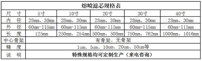 【產(chǎn)品簡介】:40英寸熔噴濾芯長度在1000-1016mm,顆粒會在pp熔噴濾芯孔道中發(fā)生架橋現(xiàn)象,使小于孔道的顆粒也能被阻攔住,過濾效率在98%以上。自身潔凈度 高,對水質(zhì)。耐酸、堿等化學(xué)試劑及有機溶劑的腐蝕。