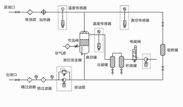 真空脫水能夠去除油液中各種狀態(tài)的水,并能去除油液中的空氣和各種揮發(fā)性物質(zhì)。